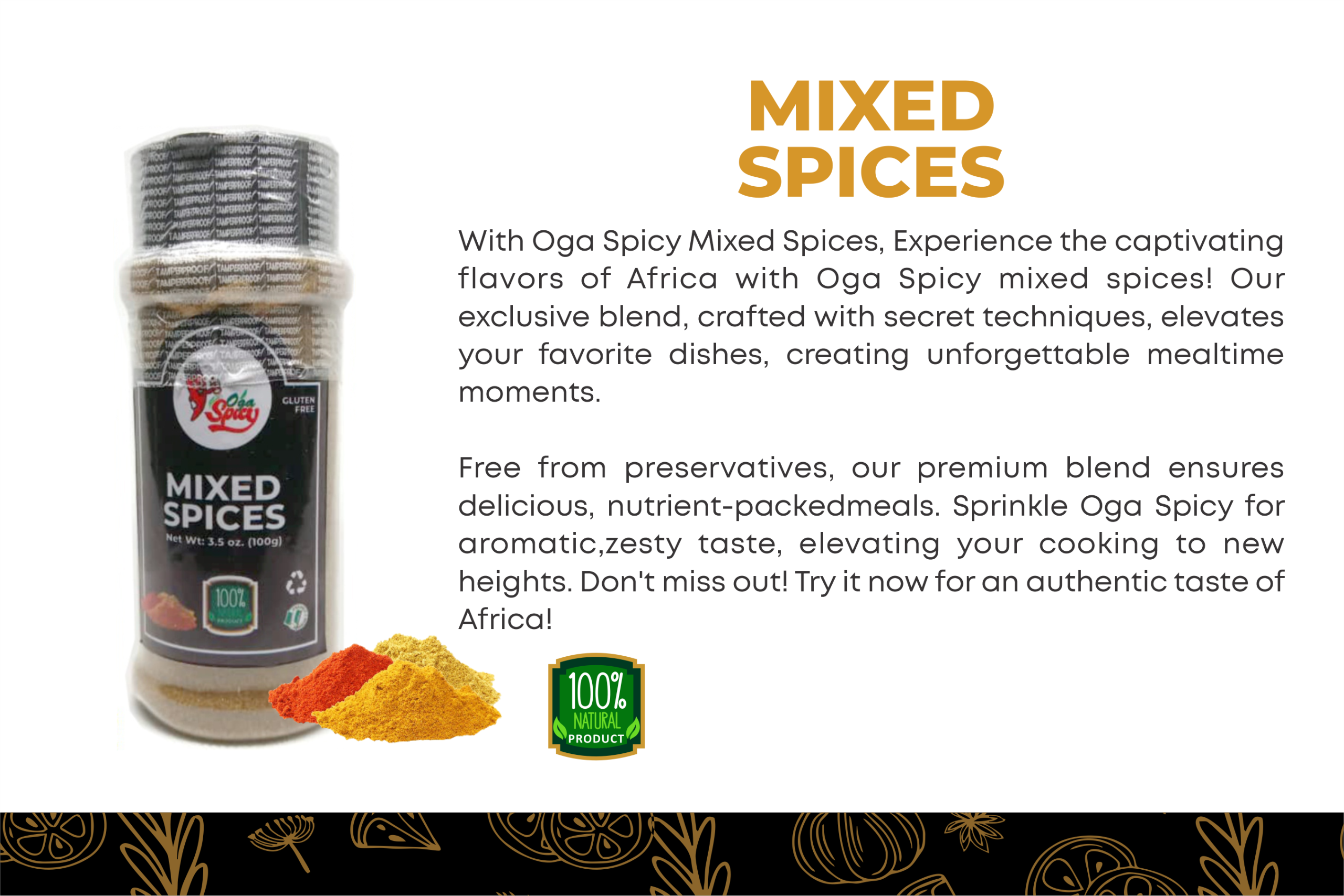 “Oga Spicy Mixed Spices — where Africa’s finest flavors unite to elevate every meal into a celebration.”
